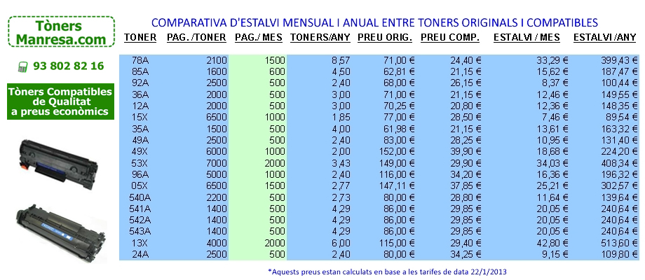 CODI : TTCB436A TONER HP 36A NEGRE COMPATIBLE DADES DEL PRODUCTE Laserjet P1505 / 1505N / M1522N / M1522NF / M1120 PREU: 21.15 + IVA |